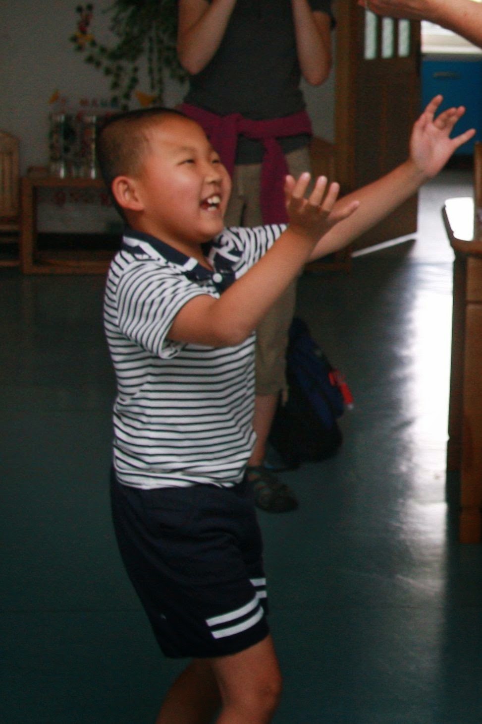 At the time of his report in December 2013 Cole could sit, stand, crawl, walk, jump and go up stairs quickly. His report says he uses a walker, however, when we were there he was walking around without one and he never fell. Cole is able to tie shoelaces, dress himself including buttoning, draw pictures and use chopsticks. He is also able to kick and throw, count and write simple characters. The staff said he obey’s class rules, has a good study attitude, is careful and answers questions. He is strong and responsible.