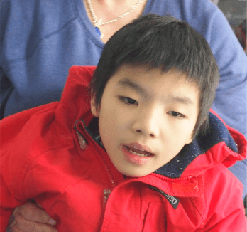 At 1 year old Elliott liked to listen to music and could sit up and hold his bottle of milk. At 1.5 years old he could call for “mama” and “aunt.” He got excited when he saw food and would raise his hands to ask for it. He could dance with music and scream. He was a little afraid of strangers and knew simple gestures and words. At 2 years old he was active and naughty. He liked to sit on a chair with children in his room. He would sometimes fight with other children over toys and would exercise by standing up holding onto something for support. At 3 years old he liked to listen to others talking. He had a good memory and could express well even though he wasn’t speaking much. He liked to eat snacks and continued exercising by standing. At 4 years old he could eat by himself and sang children’s songs. He liked to watch TV and was still unable to stand independently. At 5 years old he received surgery and rehabilitation. At 6 years old his legs were still weak despite exercising. He still needed support to stand and use the toilet. At 7 years old he was talkative and could clearly express his needs. He liked outdoor activities.