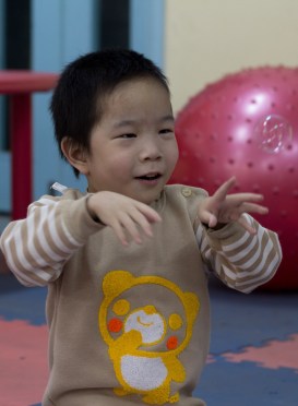 How is the language ability of the child? Her language is delayed. She can only say words of two characters, not sentences. She can say “ayi”, “mama” etc. and names of other kids.