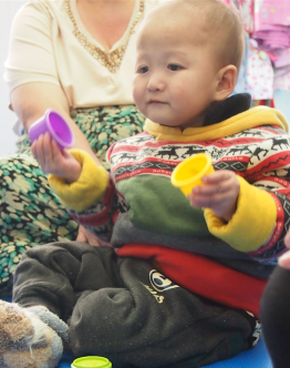 Ruby Rose was weak upon entering her orphanage. She could raise her head but wasn’t able to hold toys. At the time of her report she was almost 2 years old and was still weak. She couldn’t sit up but could raise her head when lying on her stomach. She could turn to look for sounds and liked to take the caretaker’s hands. She didn’t like noise but did like light music. She liked to be talked to and played with. She could crawl on her hands and knees, and was fairly introverted and quiet. Her favorite activity was playing with a nanny and her favorite toy was a bell.