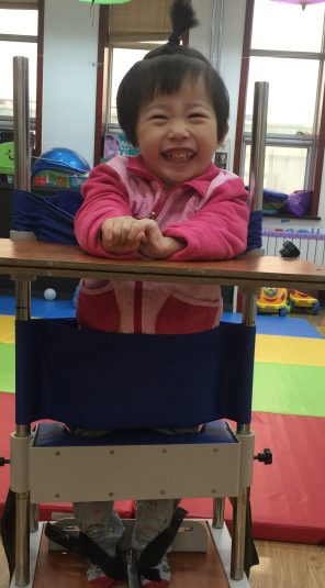The first update, which wasn’t dated but uploaded in January 2016, reported that no surgery had been done but she had been receiving rehabilitation training beginning sometime in 2014 and the effects were significant. She could pick up toys and put them into the correct boxes, feed herself, roll over, crawl, move around in a walker and stand with support.