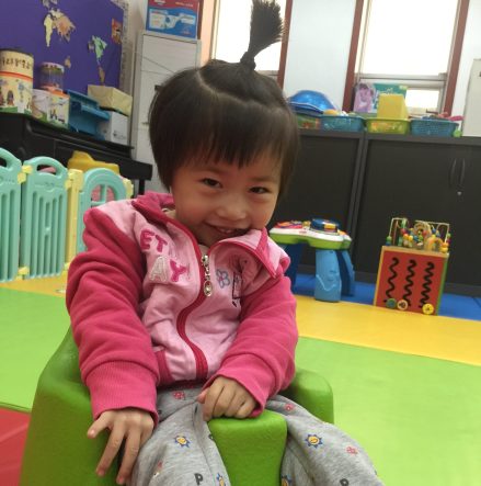 Libby’s adoption file was written when she was 5 months old in July 2013. At that time she had a ready smile and could lay on her abdomen. She lived in a bright and spacious room and was developing normally. She could locate the source of voices and visually follow toys. Although reported to be a quiet girl she would laugh out loud.