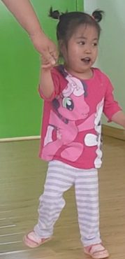 Sophie was prone to catching colds and was showing signs of heart symptoms such as blue lips and phlegm. She did nebulization four times a day, and rehabilitation daily. She could stand while leaning against a wall and could walk with her hand being held. She sometimes would say “baba” but wasn’t naming objects. If there was something she wanted she would go and get it. She could understand conversations and was able to follow instruction. Her cognitive abilities were said to be lower and her self care was relatively poor. She was described as timid.