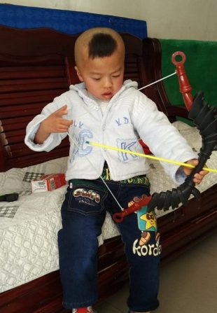 Michael’s physical development is on track compared to other children in the orphanage. He can walk, run, jump, and go up and down the stairs by himself. His fine motor skills are good as well; he can use chopsticks to pick up small objects and can draw with crayons. Michael’s intellectual development is reported to be slightly delayed, which is not uncommon for kids in orphanages. He knows his colors and numbers and can identify animals and familiar objects. He also can speak in complete sentences. He is currently living with a foster family.