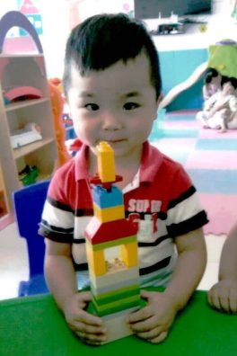 Jamie is an active, smiley, energetic young boy who enjoys outdoor play, games, music, and toy trains. Jamie also enjoys helping out with the younger children. The orphanage describes him as a big brother to the other kids. Jamie has good self-care skills. He can use the bathroom, wash his hands, clean up, and get dressed and undressed without help. Jamie’s fine and gross motor skills seems to be on track. He can walk, jump, skip, and use the stairs. He can also imitate drawing shapes and lines well. Jamie has a good appetite. He knows his numbers and sizes. A report from May, 2017 says that Jamie can use simple words and have simple communication, producing two words at a time.