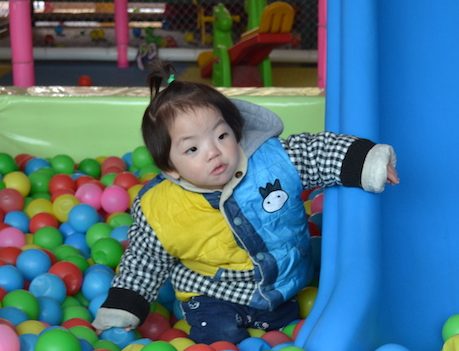 By 2 years old she could carry a toy, especially a rag doll or bell, and walk around. She would listen to the teacher’s instructions to hand objects to other children. In an effort to provide more love and care she entered a grandma’s nurturance project in February 2016. At her new home she received considerate care and training from her foster parents and was soon attached to her foster siblings. When her foster mom was hold her hands and talking to her tenderly she would look into her eyes and make the sounds of “EN” to respond. When she would see her foster dad coming home from work she would happily clap her hands and follow him around. She was too young to run fast but could chase siblings. Her siblings liked her very much. April enjoyed watching cartoons and on weekends her foster family would go on outings and take pictures which she enjoyed posing for.