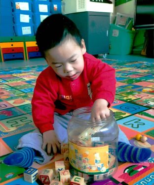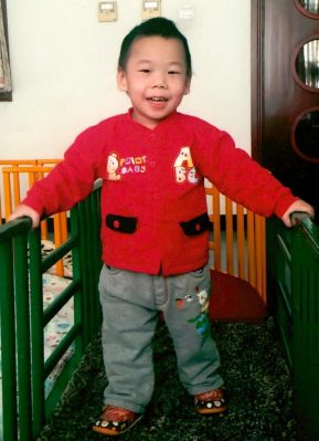 After being admitted to his institute Crew he received rehabilitation training for language, walking, fine motor skills, etc. His adoption report was written when he was 2.5 years old and at that time he could walk holding a railing but didn’t have a stable gait. He could hold tiny objects like little beads, understood caretaker’s instructions and could imitate, and made early sounds. He was said to be a positive and smiling boy that all of the caretakers liked. Playing games made him happy.