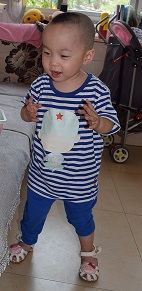 Gavin was born in September 2014 and found abandoned at 4 months old with a note stating he was born prematurely. Gavin had surgery in July 2015 to repair an inguinal hernia and has been living with a foster family on the grounds of the orphanage since May 2016.