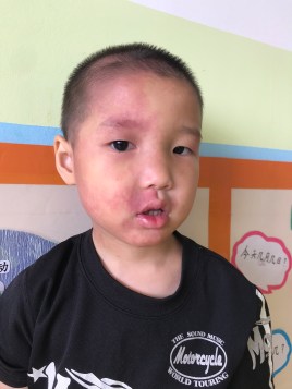 He has not been found to have seizures. Because he has not been found to have particular physical abnormalities, he has not has another MRI. The orphanage feels that his hemangioma has lightened a bit compared to before and is also much flatter. He has received potty training in his kindergarten class. He is closest to the mother and family in his loving family, his teacher, and his kindergarten friends.