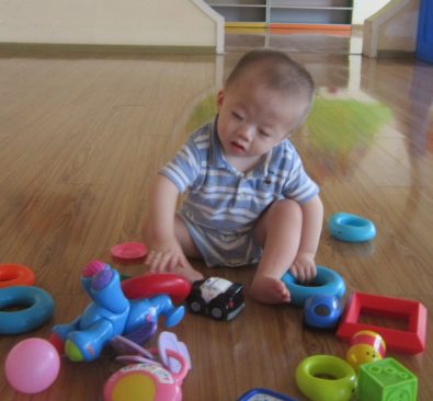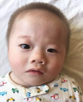Siam’s medical report states congenital laryngeal stridor but a nurse said this had no influence on his health. He is also suspected to have contracture of joint soft tissue at his neck which makes it look short. Siam’s adoption report was written when he was 13 months old and he was described as a happy child. He was able to raise his head when lying on his stomach, roll over and sit alone. He was unable to stand and had delayed physical development. He was able to use his thumbs and index fingers deftly to pick up small objects, could reach for, grasp and pass toys between his hands. Siam could follow a moving toy with his eyes and had normal hearing. He was described as an adorable child who would smile when amused by a caretaker. He liked to play with other children, understood what “no” meant and sometimes would babble to himself. Siam was said to be active and extroverted, liked to play with toys, watch TV and listen to music. When he sleeps he liked to hold onto a towel.