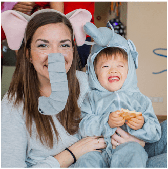 “Siam and his preschool teacher both dressed up as elephants for our Fall Festival, and it was adorable. He kept everyone giggling as he practiced making elephant noises, and he paraded around the party without ever letting go of his pumpkin cookie! He visited the photo booth, made a pumpkin craft with his nanny, and made sure not to miss out on any candy. We have so much fun partying with Siam!”
