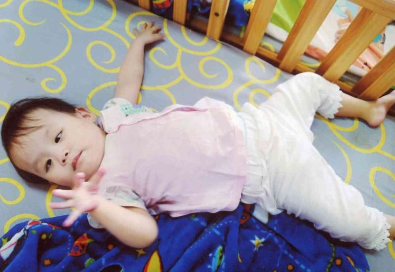 Lydia was said to be a quiet girl who loves to play with plush toys. At the time of her report in July 2018 she could make simple sounds, would turn in the direction of noise and could visually follow a moving toy. She interacted with the nanny she was close to. It was reported that due to her CHD her development was delayed compared to peers but she could roll over, sit and stand with help. She could crawl on her hands and knees, pick up small objects and held a pen to scribble.